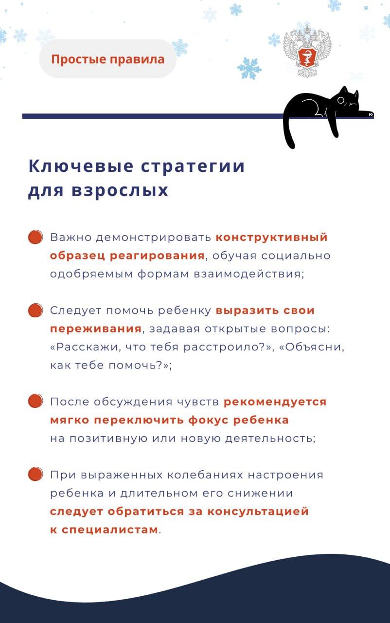 — Для развития эмоциональной саморегуляции родителям важно помнить, что задача взрослых не отрицать негативные эмоциональные реакции ребёнка, не пугаться их и не ругать ребенка за то, что он их испытывает, неверно себя ведет, когда недоволен, а продемонстрировать ему верный образец поведения и, конечно, оказать ему эмоциональную поддержку, — рассказала эксперт.
