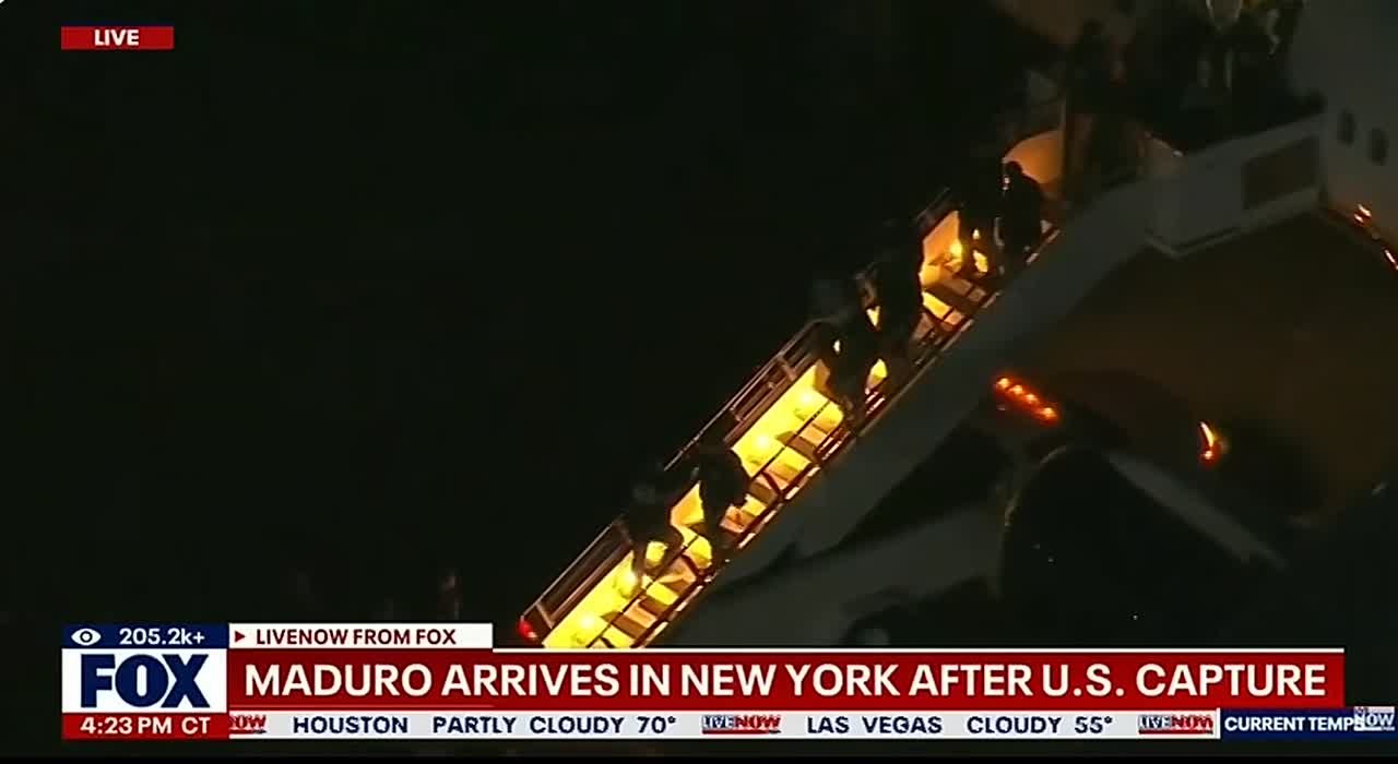 Американские телеканалы показали кадры, на которых, предположительно, Мадуро и его жену вывели с борта самолёта в сопровождении большого количества агентов ФБР и Управления по борьбе с наркотиками (DEA).