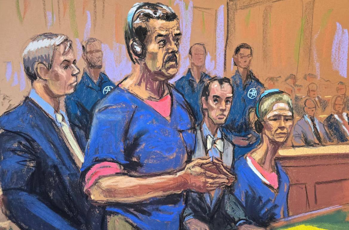 АР, Reuters и CNN показали зарисовки из зала суда в Нью-Йорке с президентом Венесуэлы Николасом Мадуро и его женой.