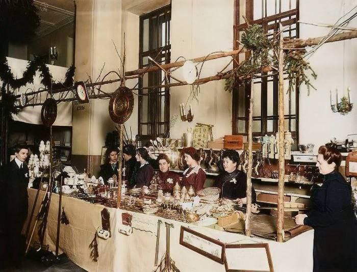 На расцвеченном фото - Рождественский базар, 1910-е.