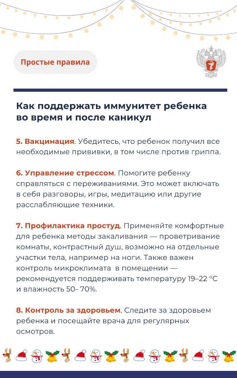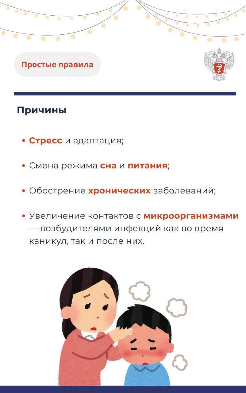 — После каникул дети могут чаще болеть из-за стресса, смены режима и окружения, снижения иммунитета. Чтобы поддержать здоровье ребёнка, важно следовать простым правилам, основанным на научных данных, — отметила эксперт.