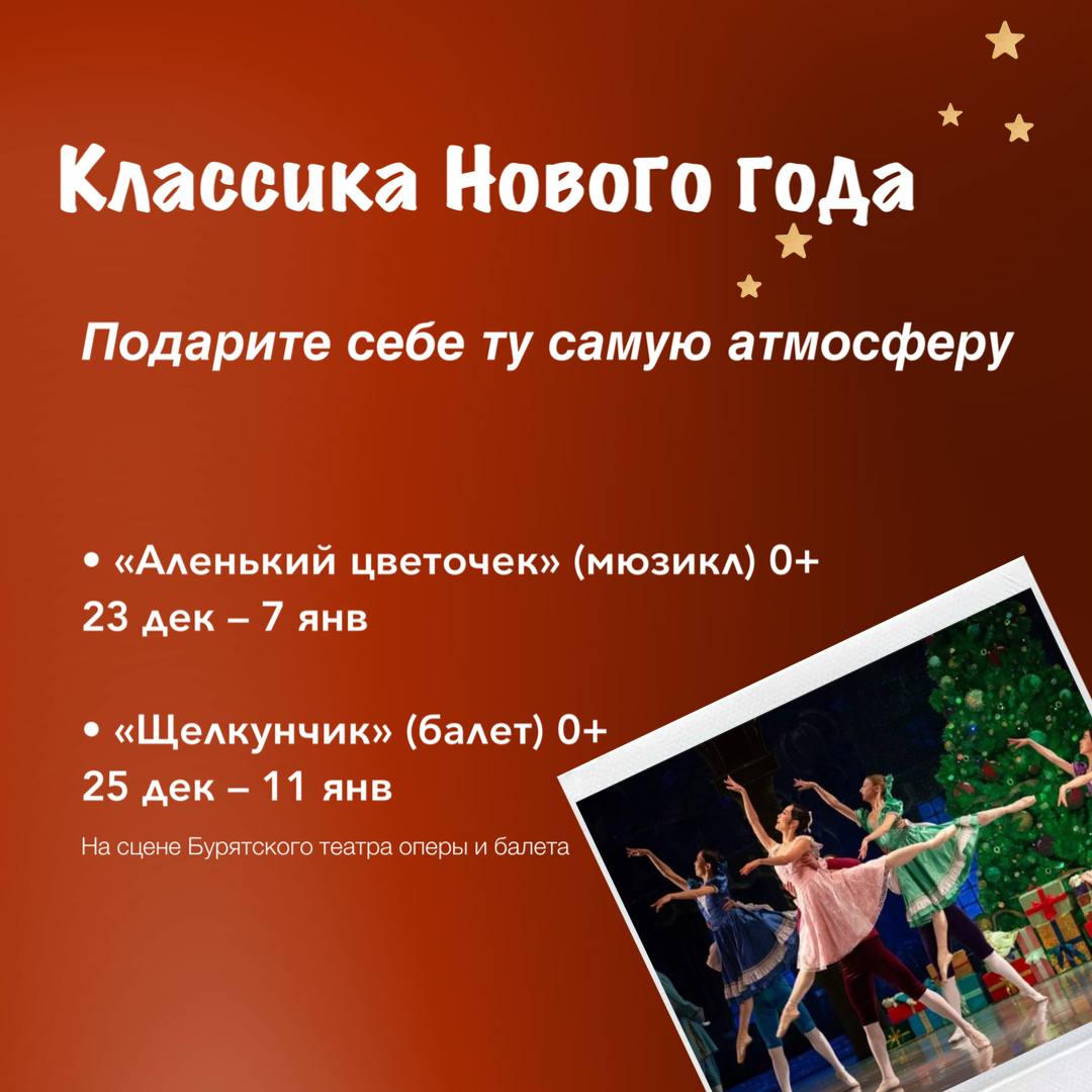 · «Щелкунчик» (балет, 0+) — с 25 декабря по 11 января.