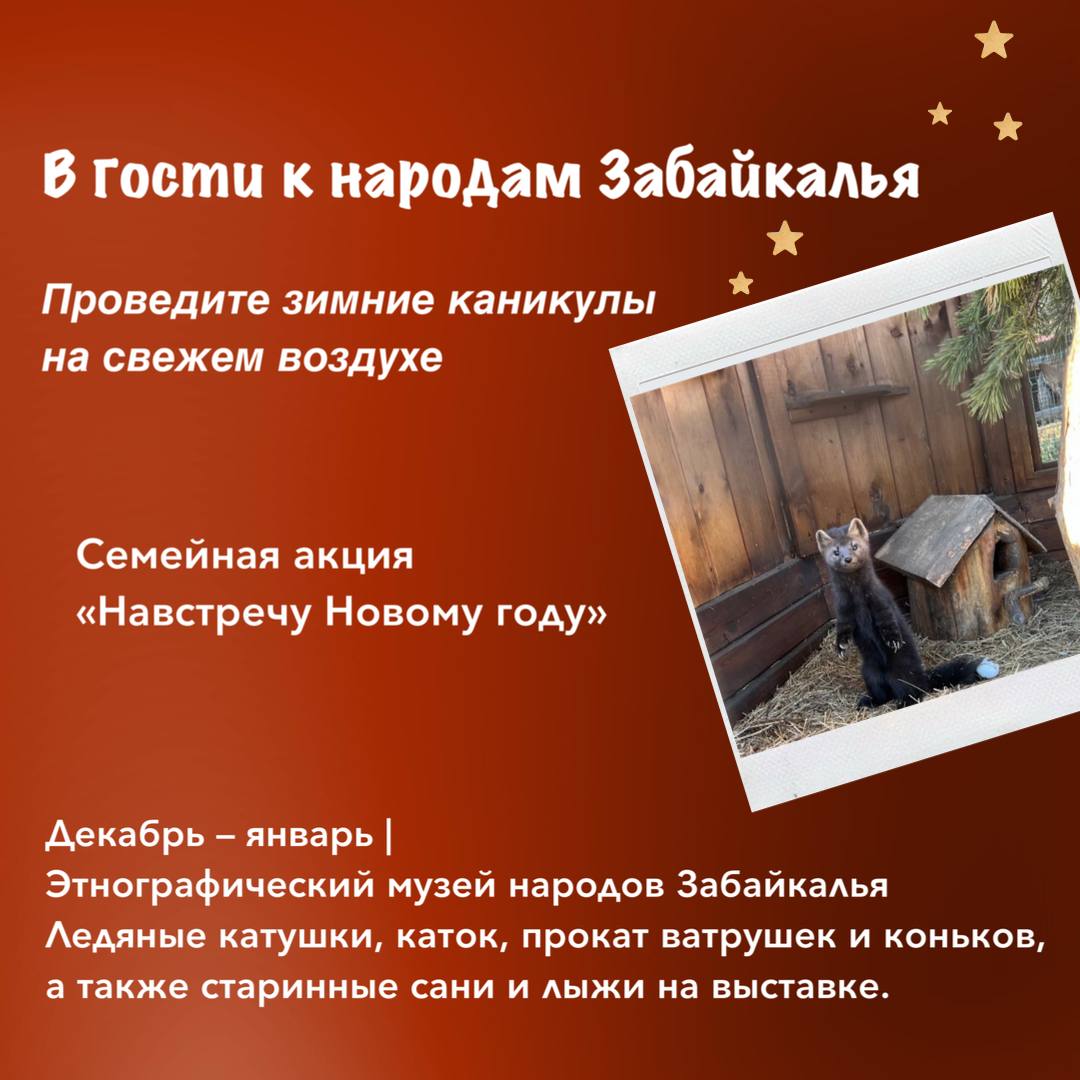Проведите каникулы активно и весело! Семейная акция «Навстречу Новому году» в Этнографическом музее народов Забайкалья (декабрь-январь):