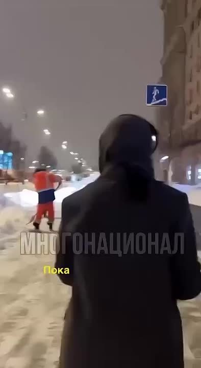И пока город вовсю воюет со стихией, по сети разлетаются интересные видео к этой теме: на кадрах москвичка угощает горячим работяг, расчищающих её двор. И что же мы видим? Ни одного «иностранного специалиста» — только русские лица. Та же картина и в Петербурге.