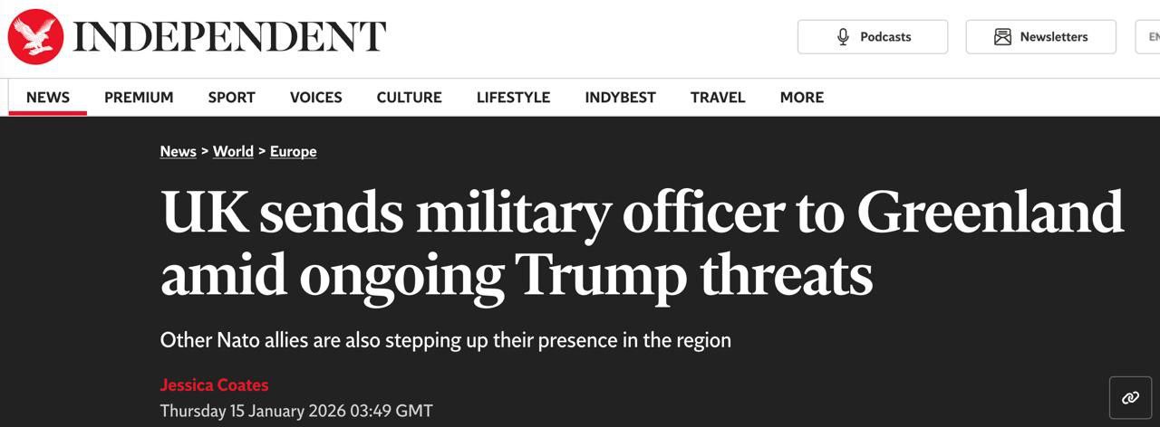 Британия направила в Гренландию одного военного офицера после угроз Трампа захватить остров. Офицер был направлен в разведывательную группу в преддверии запланированных учений Arctic Endurance.