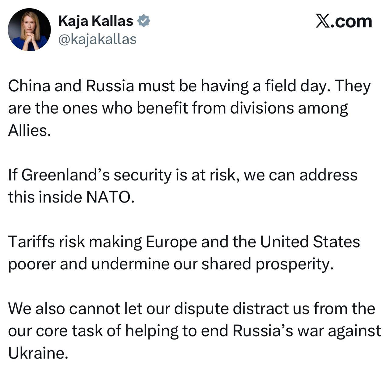 Кая Каллас потребовала от США не отвлекаться от урегулирования конфликта на Украине