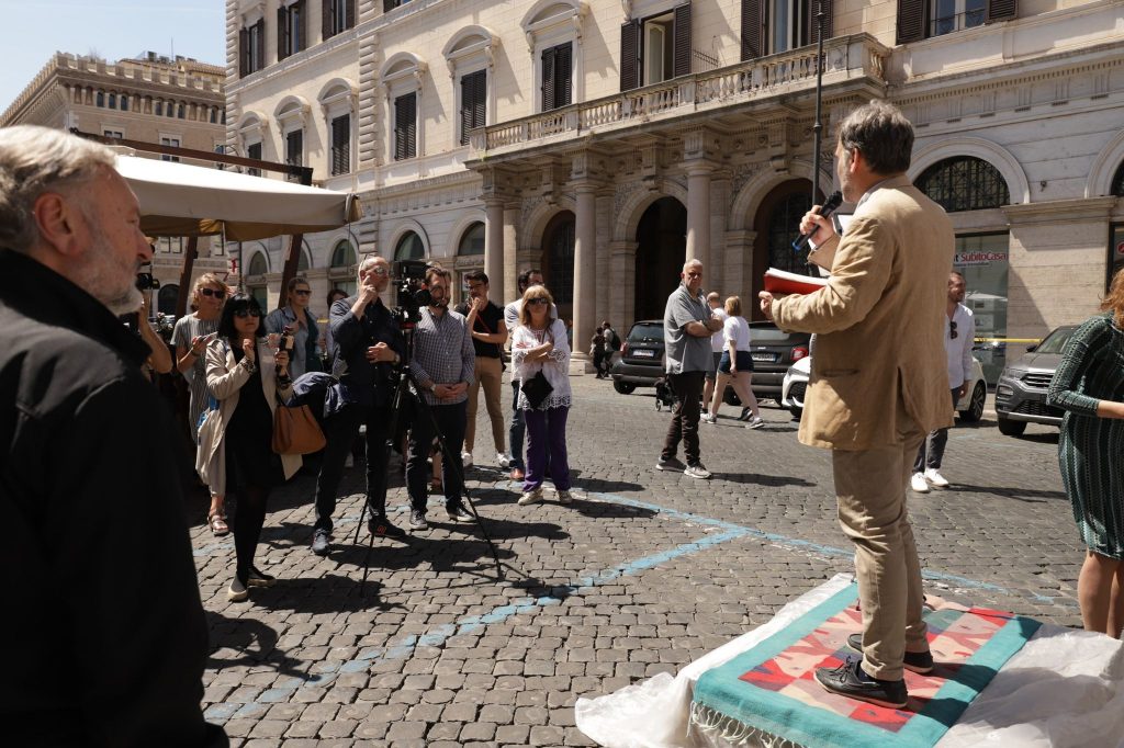 Несколько десятков человек вышли на акцию с российскими и итальянскими флагами и плакатами «Россия – не мой враг». Они выразили несогласие с решением театра, назвав его проявлением цензуры и русофобии.
