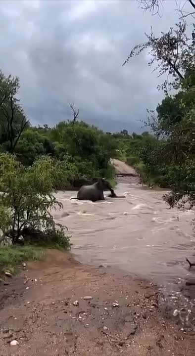 В национальном парке Крюгера в ЮАР слониха спасла своего детеныша, которого уносило бурным потоком во время наводнения. Видео с трогательным моментом быстро разошлось по сети.