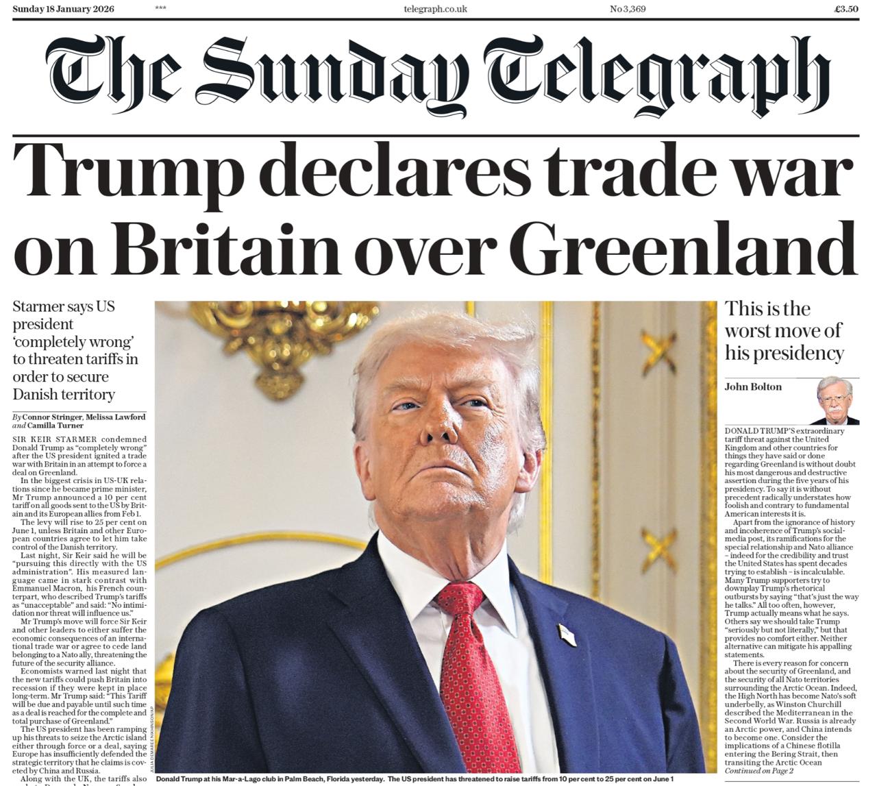 «Трамп объявляет торговую войну Британии из-за Гренландии».