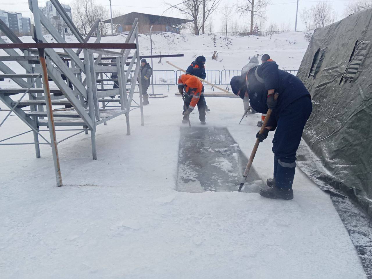 Для обеспечения безопасности, комфорта городские службы выполнили все необходимые работы. Специалисты «Горсвет» смонтировали качественное освещение вокруг места купели, работники Комбината по благоустройству аккуратно распилили прорубь, установили удобные лестницы для спуска в воду и оперативно убрали образовавшийся лёд.