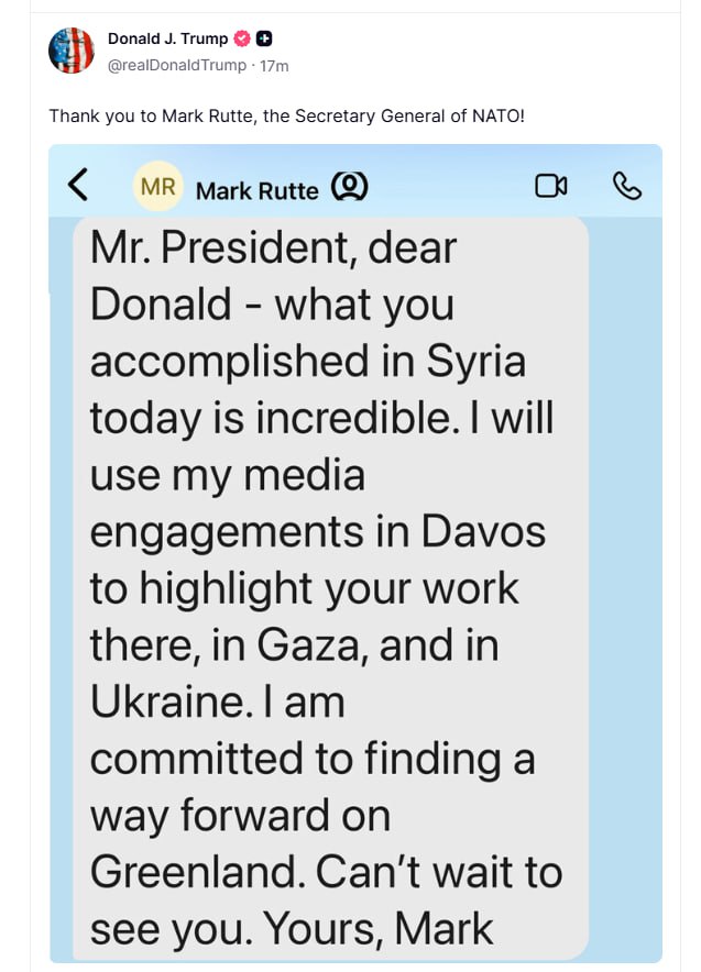Рютте в письме заявил, что стремится найти выход из ситуации с Гренландией и ждет личной встречи с Трампом.