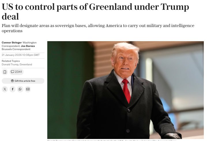 Согласованный в Давосе план, согласно полученной информации, не предусматривает прямую покупку Гренландии США. Вместо этого Вашингтон получит полный суверенный контроль над своими военными базами на отдельных участках острова. Такое соглашение позволит американцам проводить военные операции, разведку и учения, а также развивать добычу редкоземельных металлов, которые, как отмечает газета, «так интересны Трампу».