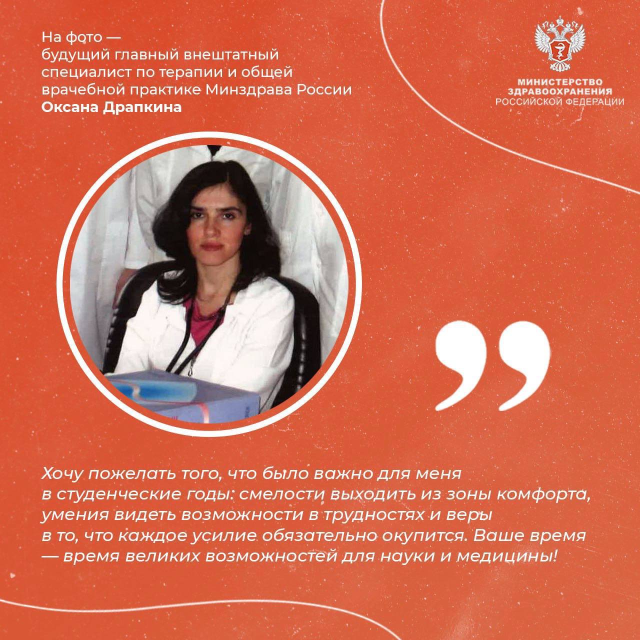 Ко Дню российского студенчества главные внештатные специалисты Минздрава России поделились своими советами и словами поддержки для тех, кто сегодня делает первые шаги в профессии. Их опыт, знания и личные ориентиры — важный ресурс для будущих врачей.