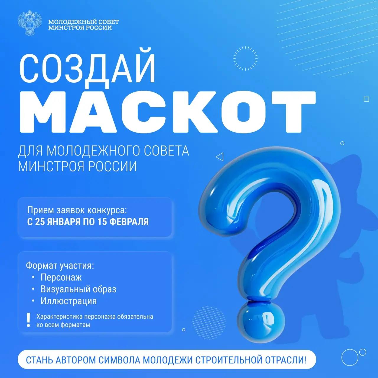 Мы приглашаем всех креативных, неравнодушных и смелых принять участие в создании официального маскота Молодёжного совета Минстроя России, который станет символом всей молодежи отрасли.