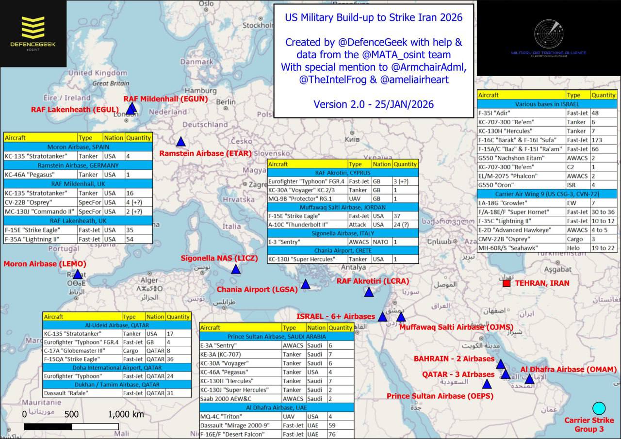 Пентагон завершил развёртывание сил для прикрытия Израиля от ответного удара со стороны Ирана. Авианосная ударная группа авианосца «Авраам Линкольн» вышла на ударную дистанцию ещё 23 января.