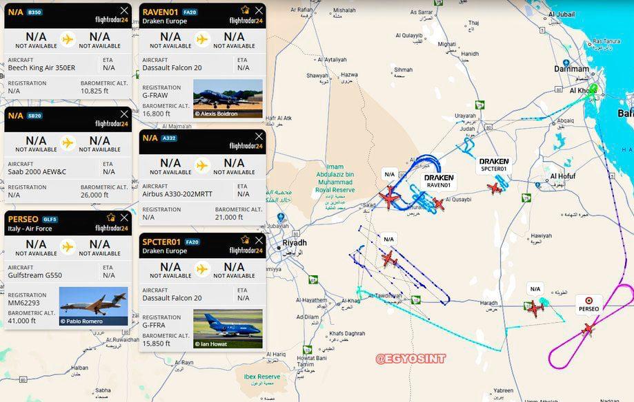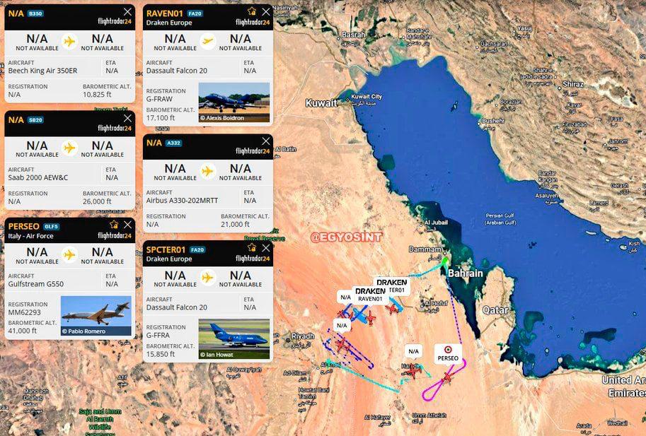 Отчеты из открытых источников также отмечают необычную воздушную активность с участием американских самолётов раннего предупреждения и управления (AEW&C) и средств радиоэлектронной борьбы вблизи Персидского залива 26 января.