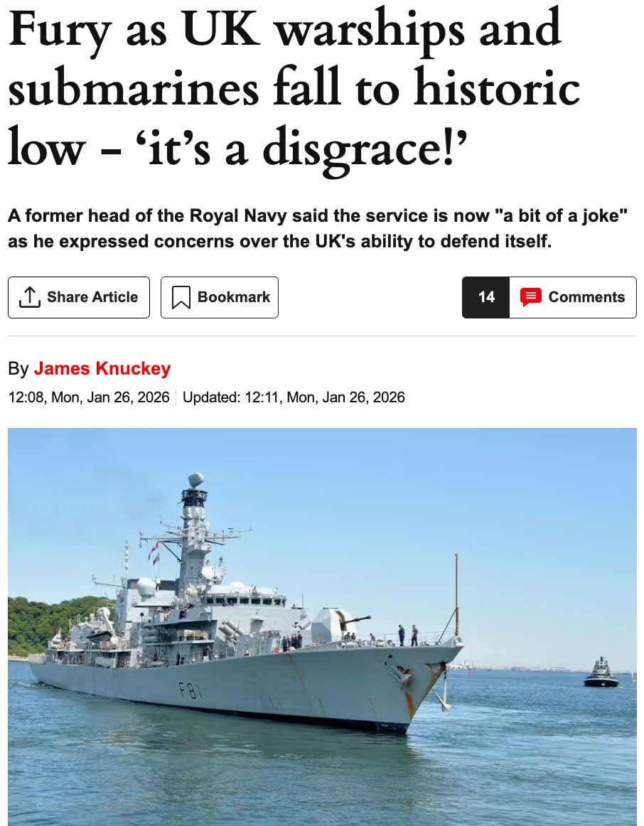 Нынешнее состояние флота рассматривается не как изолированная техническая проблема, а как симптом общей деградации оборонных и государственных институтов Великобритании. На фоне растущей глобальной напряженности и сокращения армии до исторических минимумов заявления о «новом гибридном флоте» все больше расходятся с реальностью небоеспособных кораблей и пустых доков.