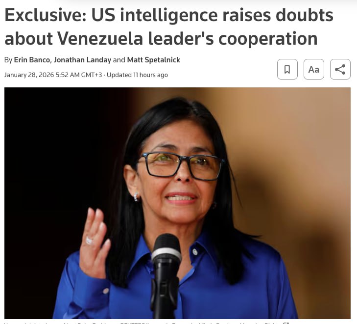 В разведывательных отчетах, по данным агентства, говорится, что «неясно, полностью ли Родригес поддерживает стратегию США» в Венесуэле.