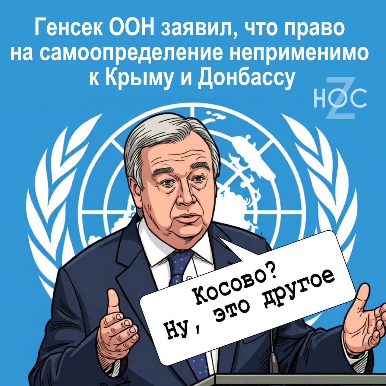 Отвечая на запрос России, генсек ООН Гутерреш заявил, что, по заключениююридической службы Секретариата, к Крыму и Донбассу, в отличие от Гренландии (читай - и Косово) принцип самоопределения народов неприменим.Напомню, что принцип самоопределения...