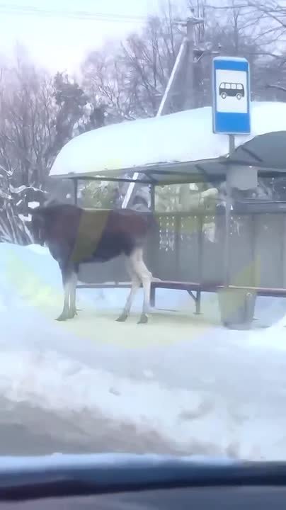 До Москвы не подбросите?. Сохатого заметили морозным утром на автобусной остановке жители подмосковной Балашихи