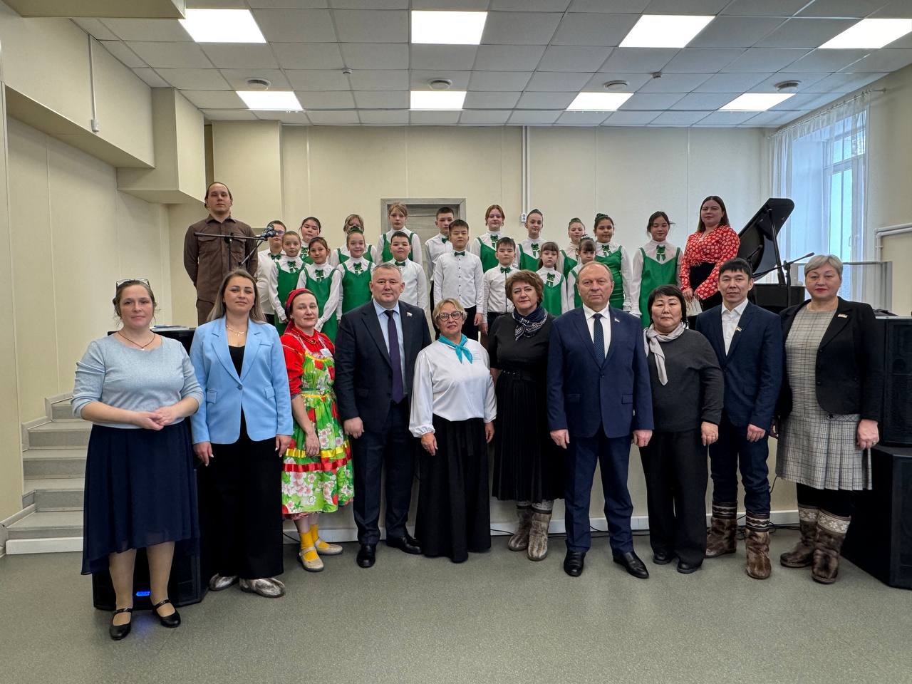 Следующим пунктом стала детская школа искусств. В новом современном здании тепло, уютно и в каждом кабинете царит творческая атмосфера. Строителями должное внимание уделено и доступной среде – кроме лифта здесь работает гусеничный подъёмник. Гости оценили условия для развития детей и посмотрели небольшой концерт.