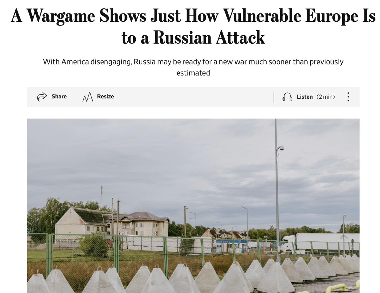 The Wall Street Journal опубликовало результаты моделирования, которое затеяли Die Welt и Немецкий центр военных игр вместе с бывшими немецкими чиновниками и сотрудниками НАТО.