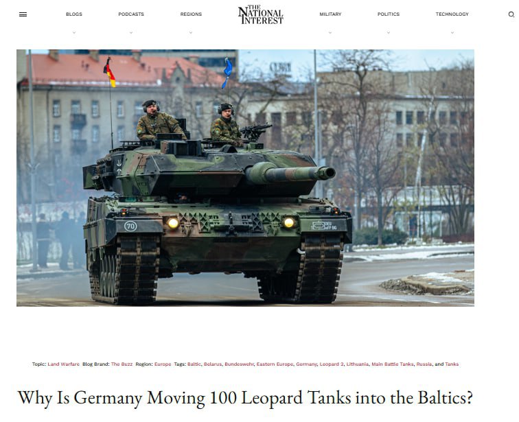 По информации издания The National Interest, около 5000 солдат бундесвера и 105 новейших танков Leopard 2A8 к 2027 году будут постоянно размещены в Литве.