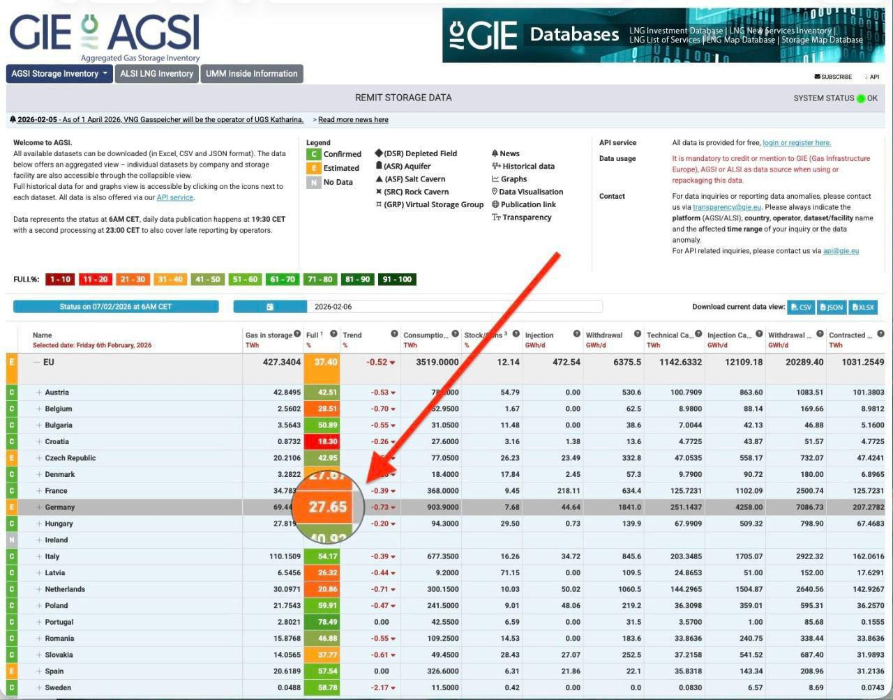 Помимо Германии в подобной же стрессовой ситуации находится Франция, Нидерланды, Бельгия, Хорватия, Латвия. Да, и в среднем по ЕС газовые хранилища заполнены на 37,4%. Год назад газовые хранилища были заполнены на 50% и это был самый низкий уровень с энергетического кризиса 2022 года.