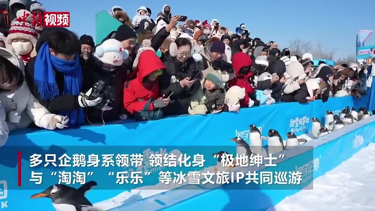 Важно переваливаясь с лапки на лапку, по ледовому парку в китайском Харбине на свой ежедневный променад вышли пингвины.