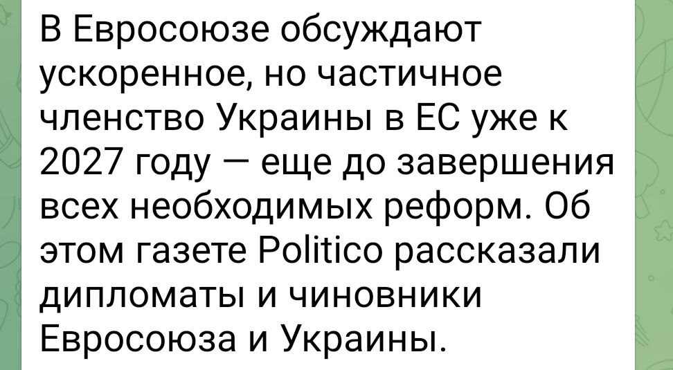 Евросоюз разрабатывает план из пяти пунктов для предоставления Украине частичного членства уже в 2027-м. Предполагается, что Киев получит место за столом переговоров в ЕС прежде, чем проведет реформы, необходимые для полноценного...