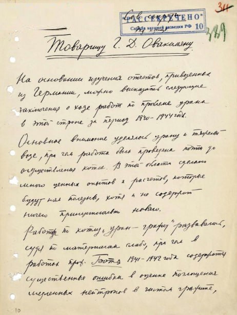 Изучив перехваченные материалы о работах немецких ученых, Курчатов, который 11 февраля 1943 года был назначен научным руководителем советского атомного проекта, направил аналитическую записку. В ней он указал на ошибочный вывод ведущего физика Третьего рейха Вальтера Боте, сделанный в 1941-1942 годах, который поставил крест на одном из ключевых направлений исследований.