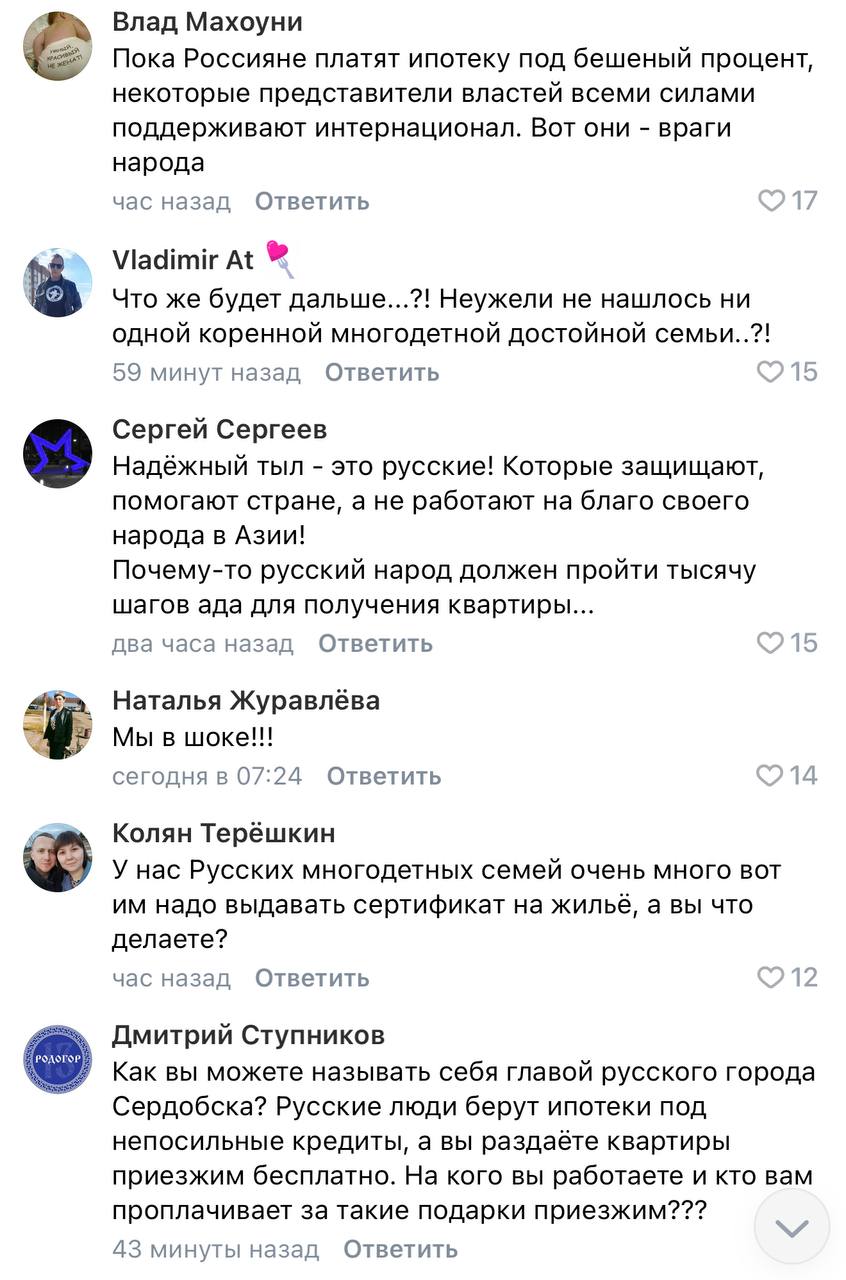 Но мы потерпим. Главное, что "ценнейшие специалисты" теперь с надёжным тылом и могут строить планы на будущее. За наш с вами счёт. Вопрос к мэру Ермаковой и не только: а для коренных жителей "уютный семейный очаг" не предусмотрен? Нам, видимо, только ипотечная кабала и пожелания держаться?