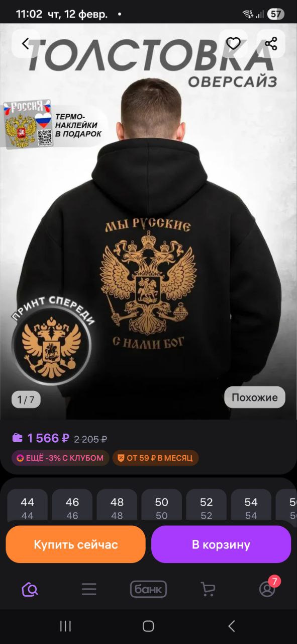 Но и это ещё не всё. У этого же продавца имеются толстовки и с другим принтом, где красуется надпись "Мы русские! С нами Бог!". В общем, и нашим и вашим, и споем и спляшем.