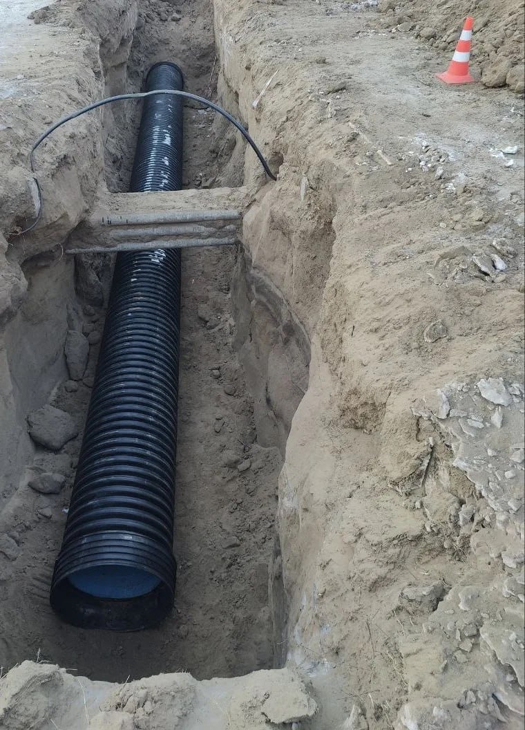 На улице Бабушкина продолжается устройство ливневой канализации. На участке от бульвара Карла Маркса до пересечения с улицей Терешковой, где будет обустроена будущая третья полоса в сторону центра города, уже проложено 400 метров водоотвода.