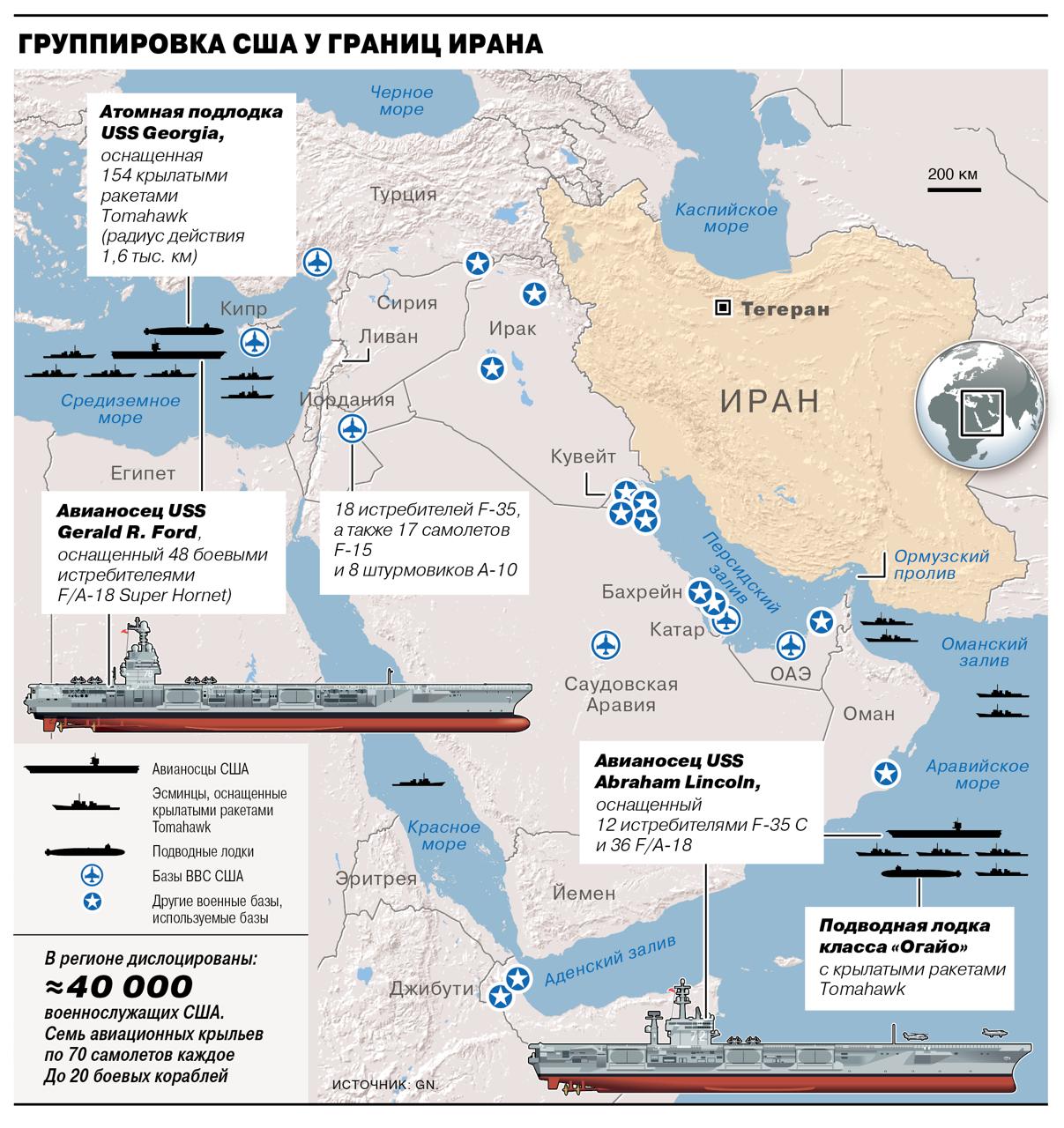«Масштабность сосредоточенных сил означает, что американские военные могут выполнить любое решение Трампа — от продолжительной, высокоэффективной кампании до более целенаправленных, ограниченных ударов»,— сказала газете Дана Строул, бывший заместитель помощника министра обороны по Ближнему Востоку, а ныне директор по исследованиям в Вашингтонском институте.