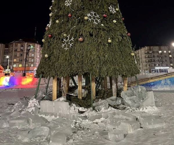 Акт вандализма зафиксирован в Северобайкальске. Неизвестные разбросали ледяные блоки, повредили территорию вокруг главной ёлки.