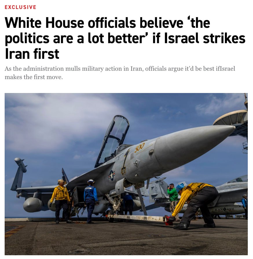 По данным издания, в Вашингтоне предпочли бы, чтобы первый удар нанес Израиль. В этом случае ответная атака со стороны Ирана стала бы для США формальным поводом для вступления в конфликт. Чиновники полагают, что американская поддержка будет значительно активнее, если Иран ударит по союзнику Вашингтона. Однако наиболее вероятным сценарием источники Politico называют совместную американо-израильскую операцию. В посольстве Израиля в Вашингтоне от комментариев отказались.