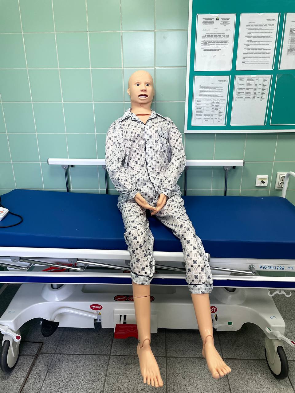 В БСМП сотрудники отрабатывают навыки на современном манекене-тренажере. Он позволяет врачам и медсестрам оттачивать мастерство без риска для пациентов.