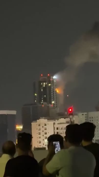 Очевидцы показали кадры удара беспилотника по высотке в Бахрейне.