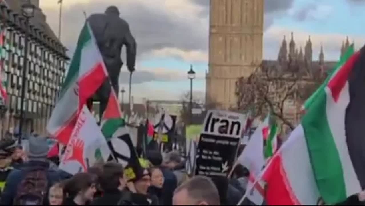 Тем временем протесты против действий американцев проходят и в Великобритании. Жители Лондона массово выходят на улицы.