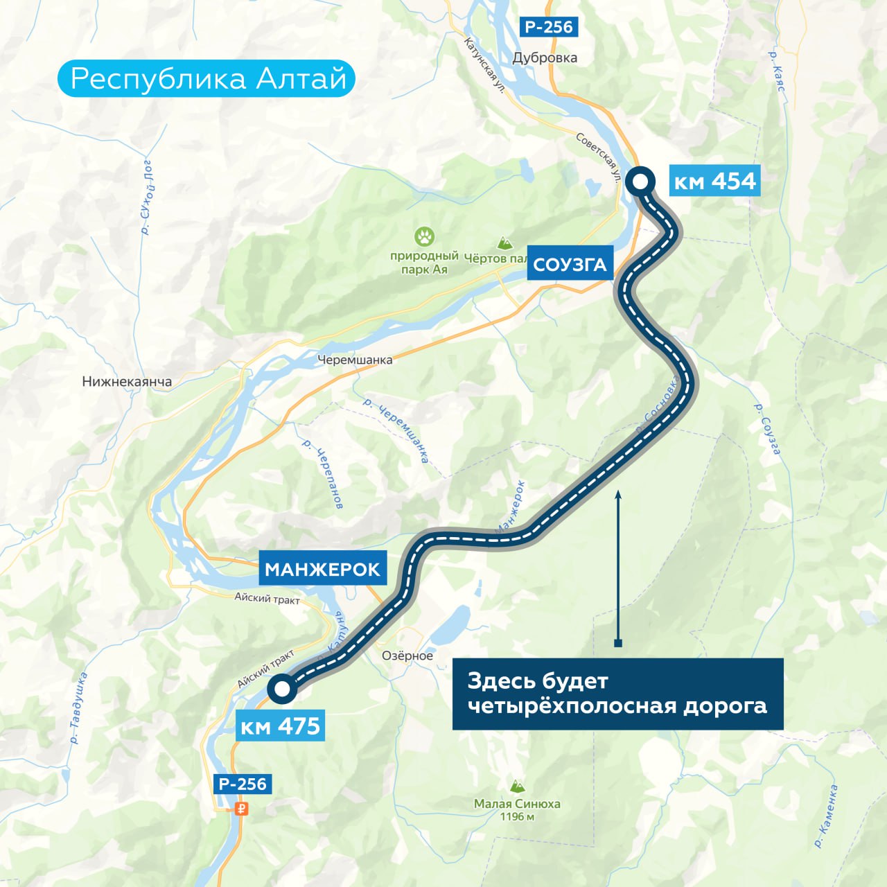Благодаря новой четырёхполоске транзит, минуя Соузгу и Манжерок, выйдет за пределы населённых пунктов и водители сэкономят время в пути.