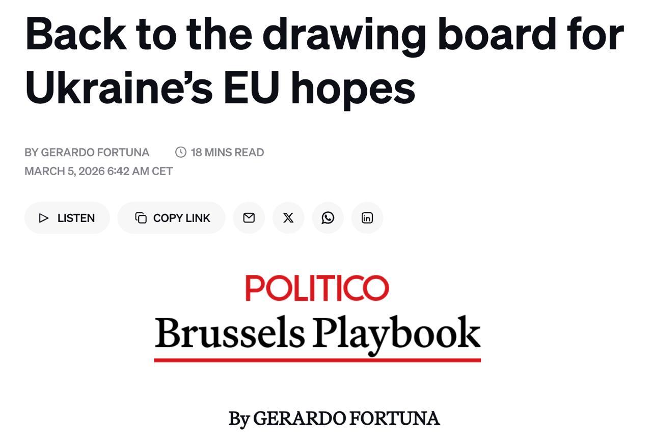 Как сообщает Politico, на ужине в Брюсселе с главой Еврокомиссии послы государств союза сообщили, что их страны не поддерживают формат упрощенного членства к 2027 году.