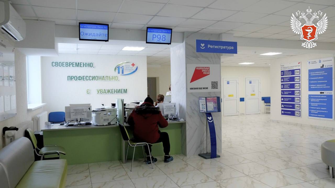 В обновленном здании заменили инженерные системы, внедрили систему обратной связи: теперь на дверях каждого кабинета размещены QR-коды для отзывов, а также установили терминал для электронного управления очередью.