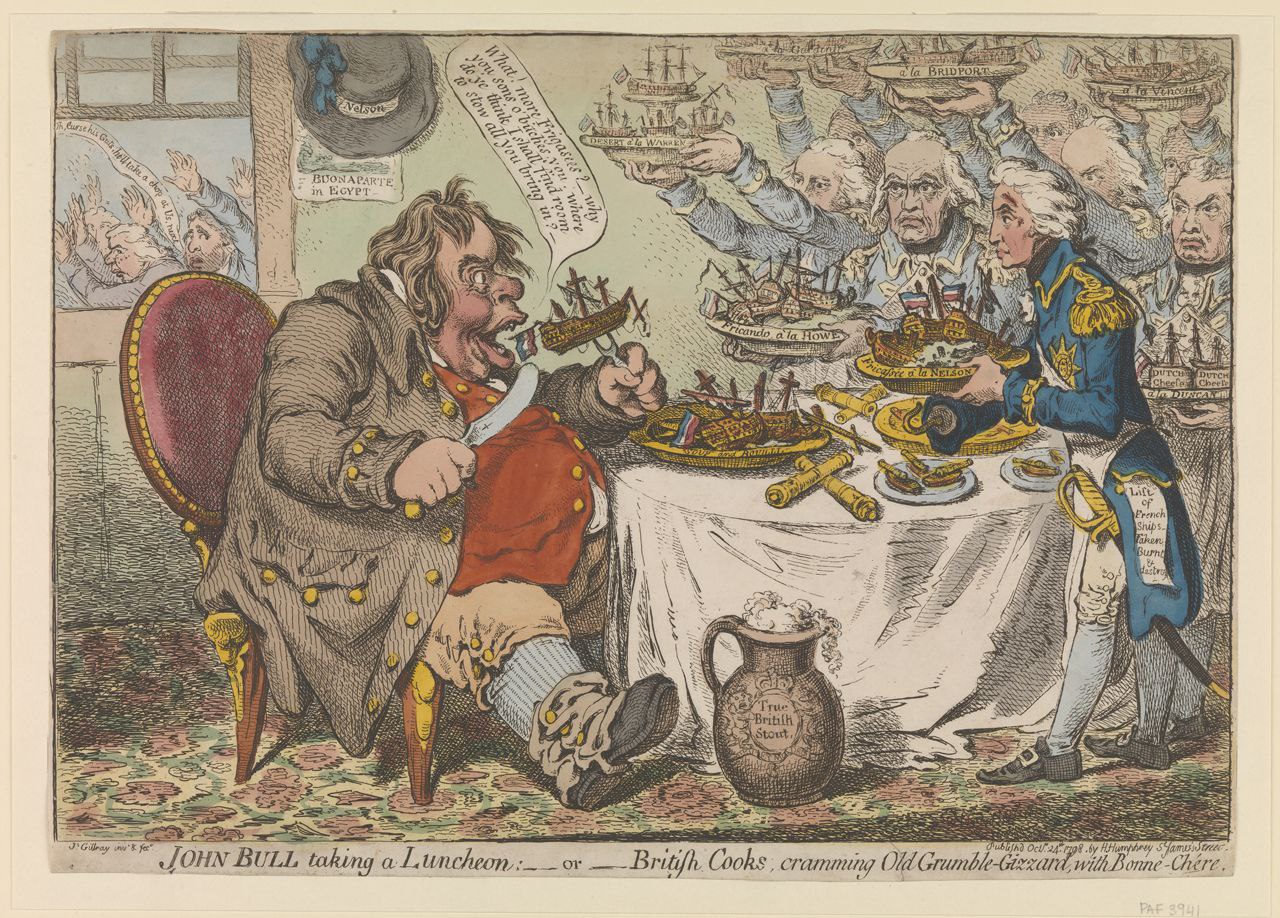Первые профессиональные карикатуристы в Европе появились именно в туманном Альбионе. Начиная со второй половины 18 века английский рынок был наводнен сатирическими листами, в которых бравые газетчики того времени оперативно и остро откликались на все текущие события, в том числе и на внешнеполитической арене.