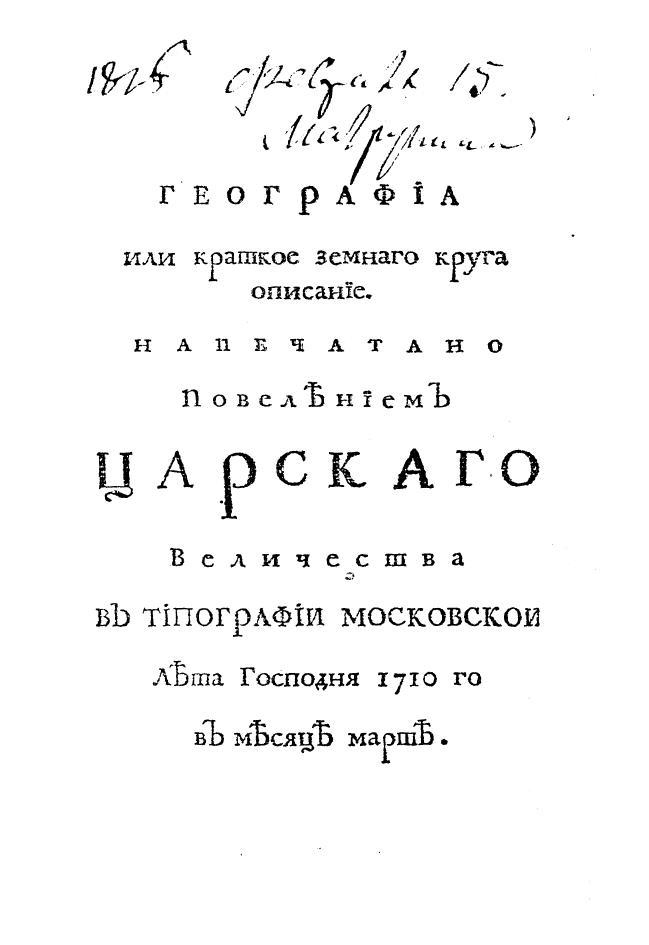 316 лет назад, 10 марта 1710 года, вышел в свет первый печатный учебник по географии на русском языке — «География, или Краткое земного мира описание».