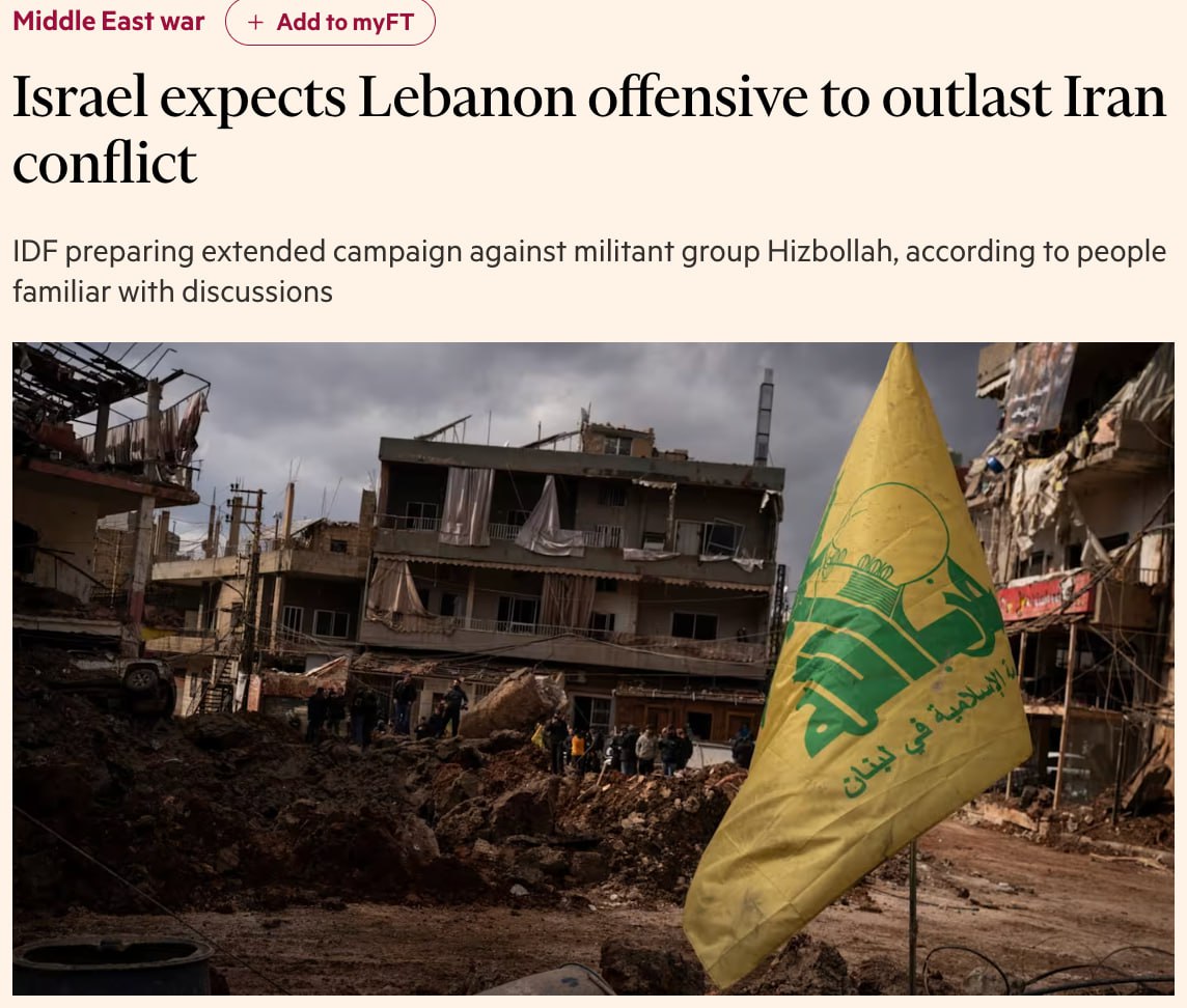 Израильское командование закладывает основу под долгосрочный конфликт с ливанской группировкой «Хезболла». Как сообщает The Financial Times со ссылкой на источники, военная кампания против шиитского движения может продолжиться и после того, как активная фаза операции против Ирана останется позади.