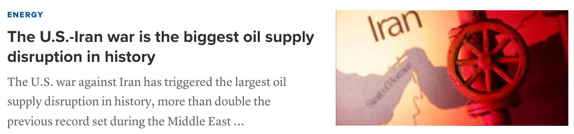 Конфликт вокруг Ирана спровоцировал крупнейший в истории сбой мировых поставок нефти.