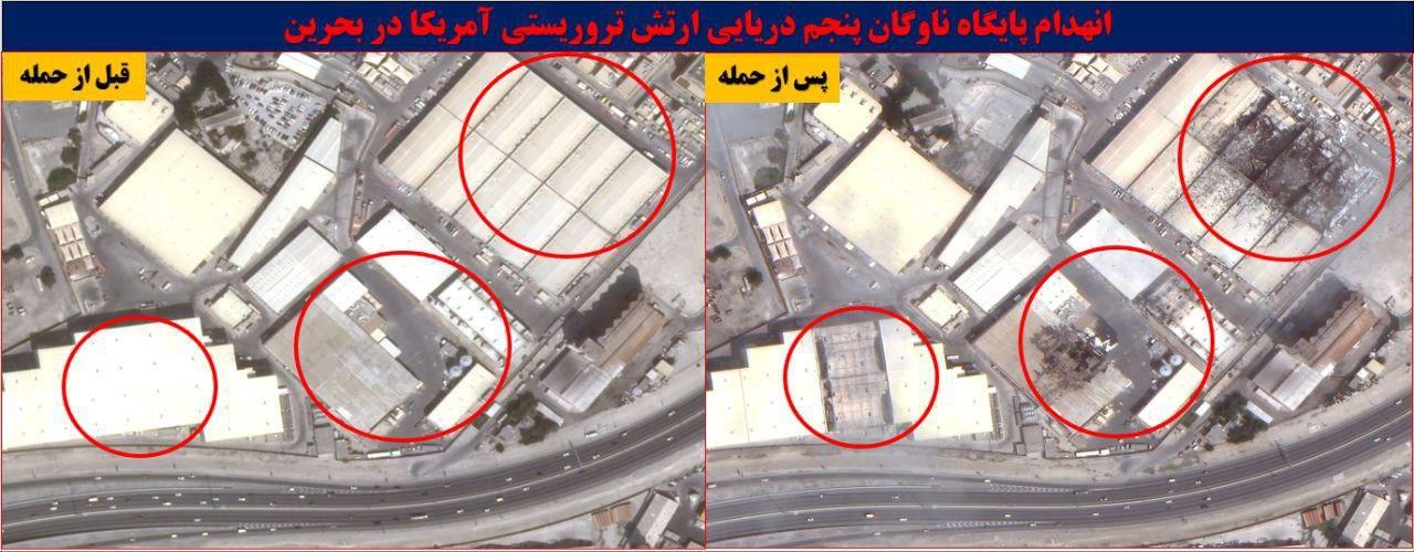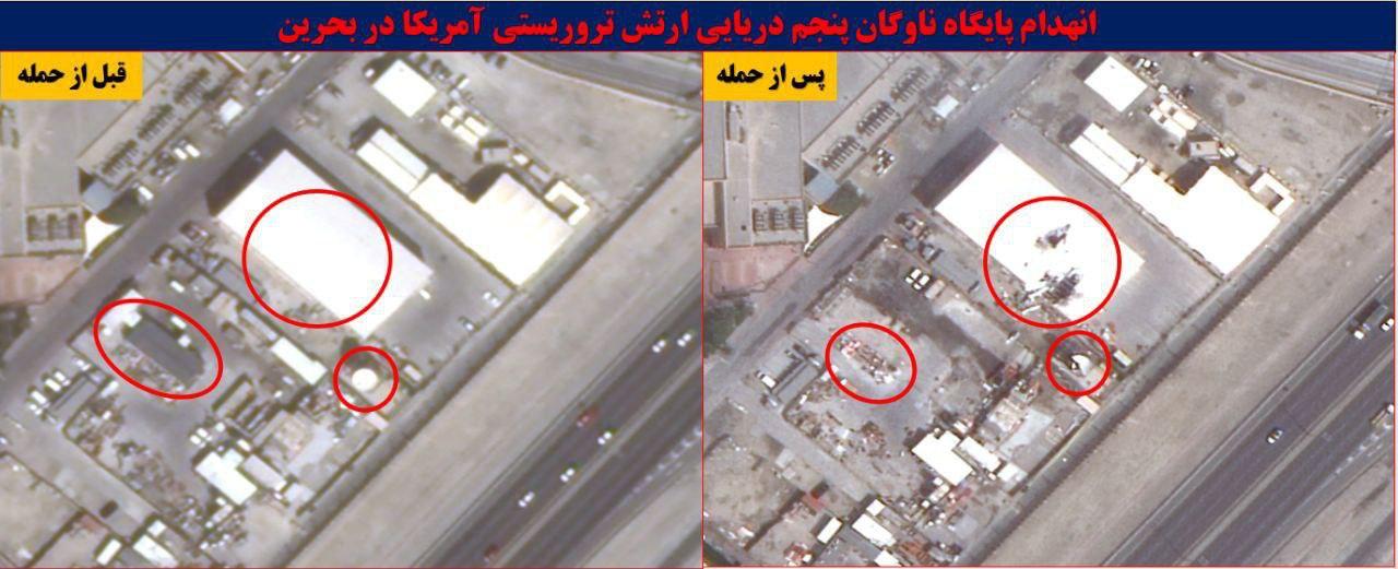 В открытом доступе впервые появились аэрофотоснимки последствий ударов Ирана по американским базам в Бахрейне с применением ракет и беспилотников (фото 1-3).