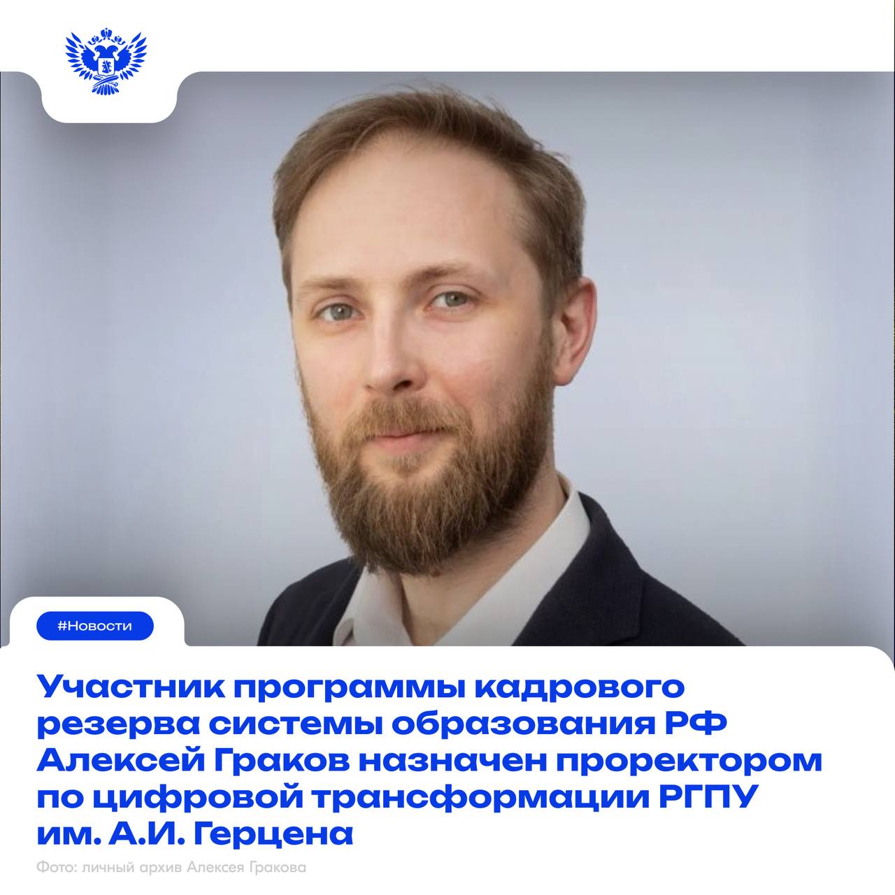 Поздравляем участника Программы управленческого кадрового резерва системы образования РФ Алексея Гракова с назначением!