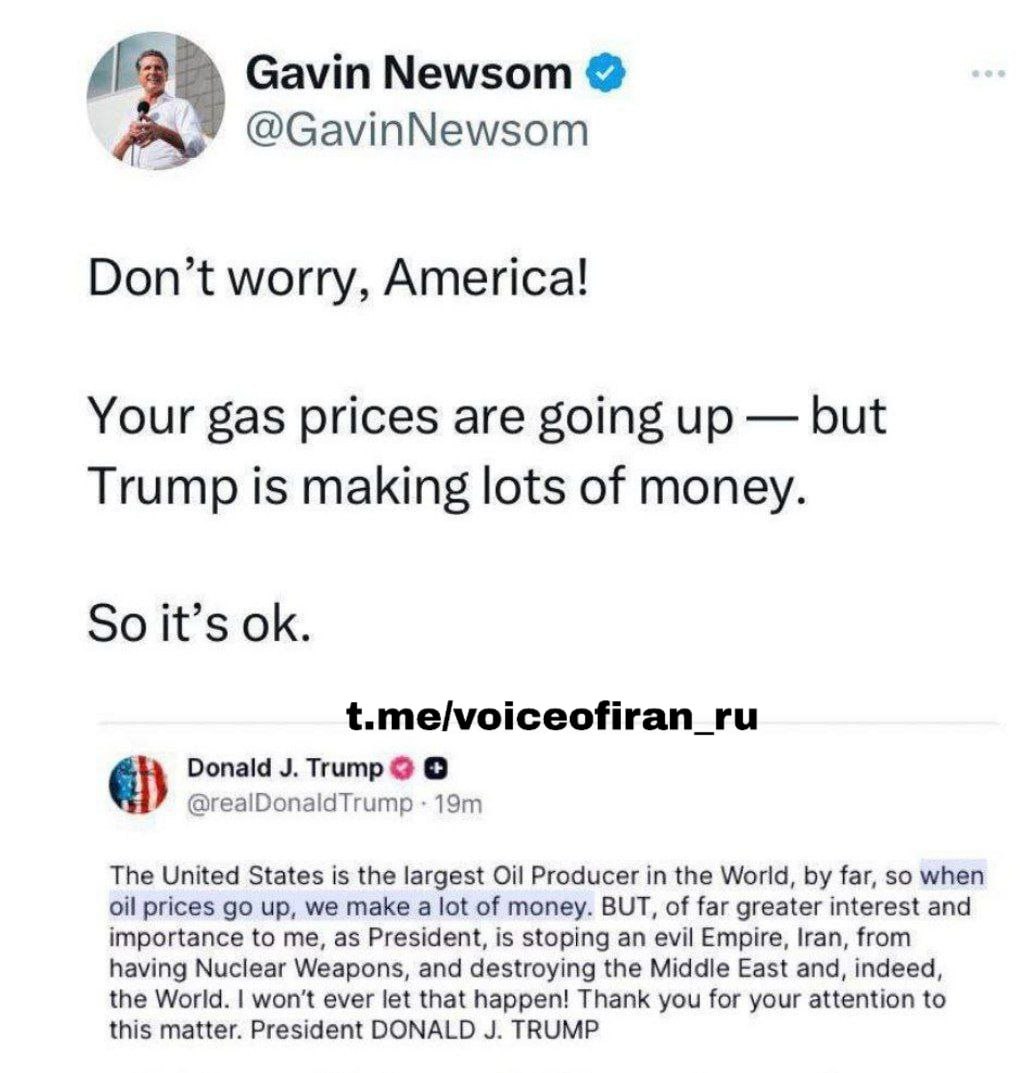 «Цена на бензин у тебя растёт, но Трамп зарабатывает много денег. Так что всё в порядке».